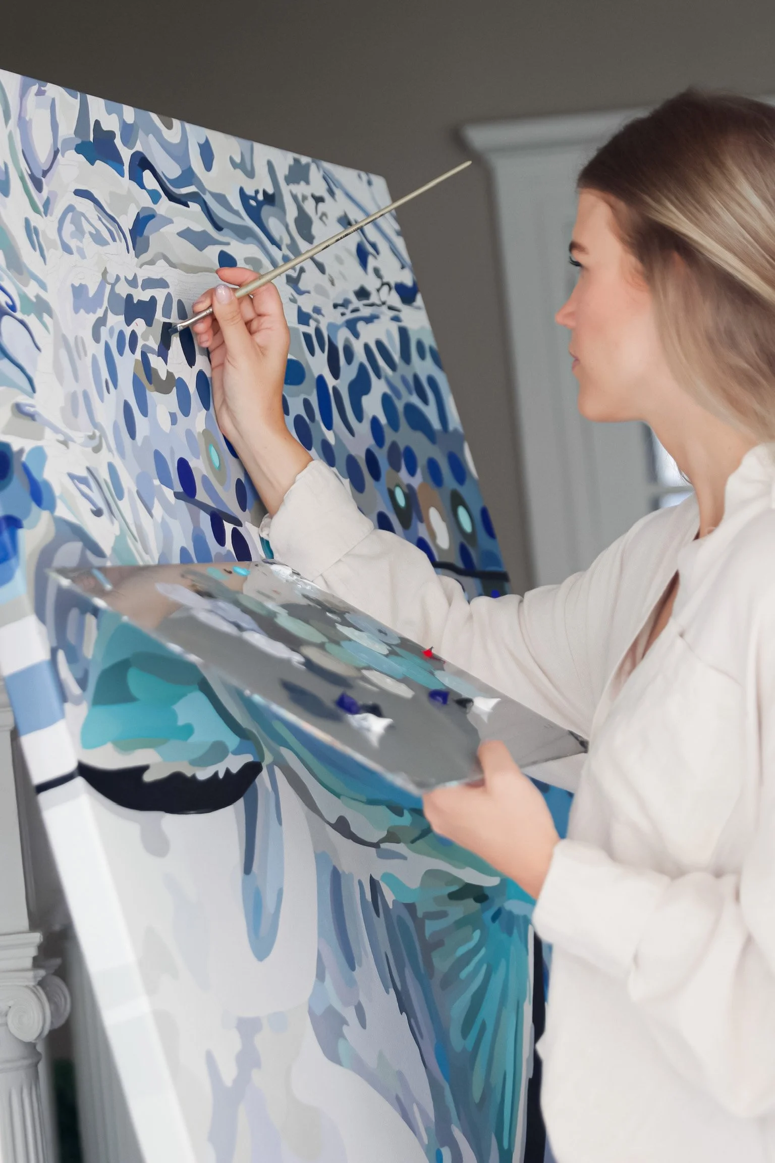 This series experiments with the inverted color spectrum or inverted qualia. This idea originated when I was studying abroad in Italy. I was working in the dark room one day, developing film and hanging negatives to dry when my professor popped in. He showed me a quick shortcut on my phone to view the negatives as their positives. Ever since then, I’ve used this shortcut to save some time on exposing film negatives. It wasn’t until recently that I would just randomly change my phone to that shortcut to view photos and play with color schemes. The colors that are painted on the canvas are considered to be the invert of the normal color spectrum. For additional dimension, the viewer can see the natural colors through the shortcut on their phone when holding it over the canvas.